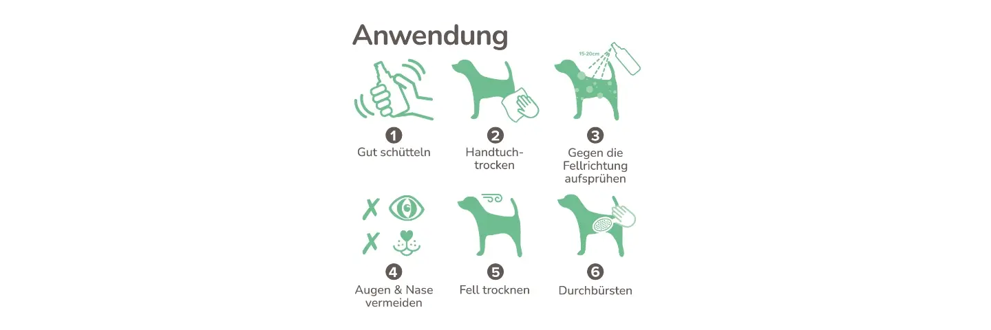 Die geruchsbildenden Stoffe werden gebunden oder zersetzt, sodass der Geruch gar nicht erst zurückkehrt. Das ist nicht nur effektiver, sondern auch schonender für Haut und Fell.